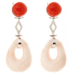 OHRRINGE DOTEA MIT KORALLE UND DIAMANTEN, IN WEIßGOLD, 18 KT