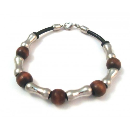 BRACCIALE DA UOMO IN ACCIAIO E LEGNO