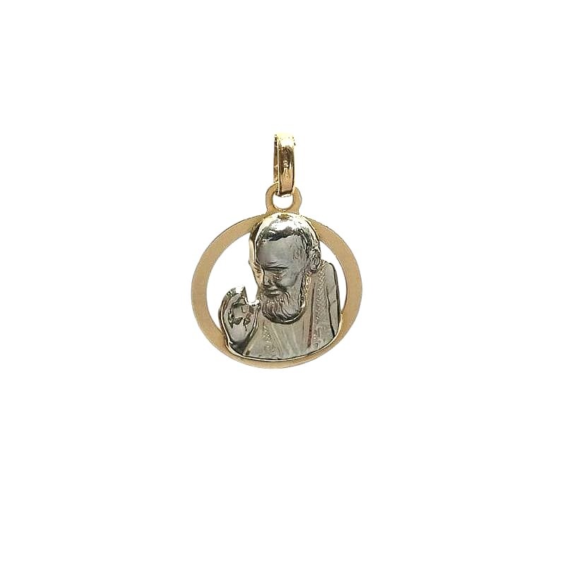 COLLANA SAN PIO IN ORO GIALLO E BIANCO 18 KT + COLLANA LACCIO IN OMAGGIO