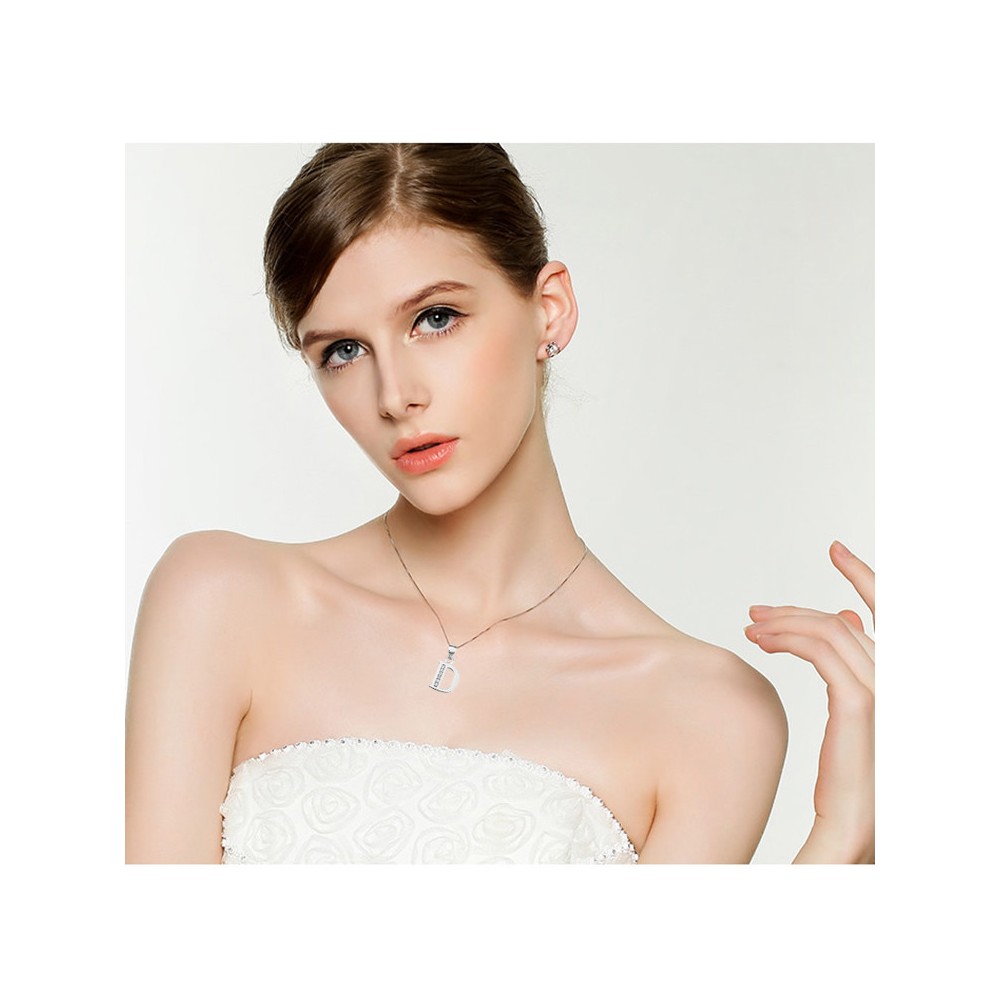 HALSKETTE MIT ANHÄNGER BUCHSTABEN D SILBER RHODINIERT WEIß-GOLD UND ZIRKONIA-SCHNITT BRILLANATE