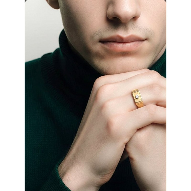 ANELLO SOLITARIO DA UOMO IN ORO GIALLO BIANCO E ROSA 18 KT CON ZIRCONE
