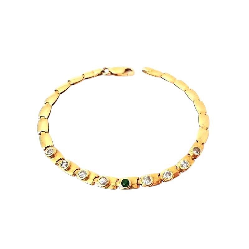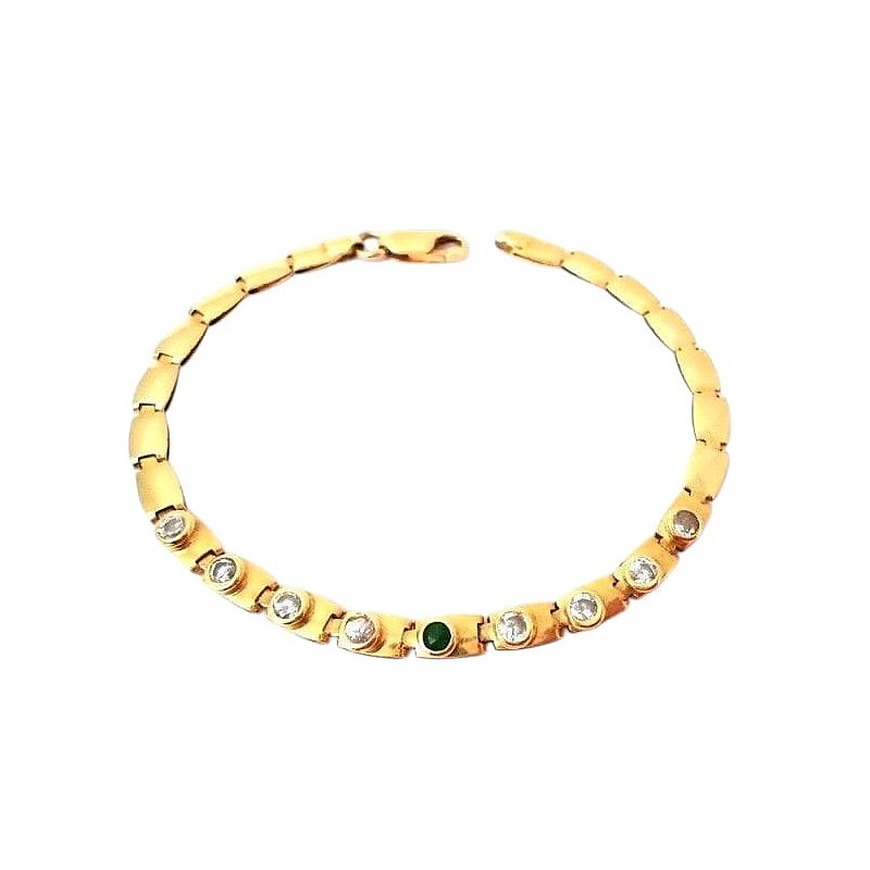 BRACCIALE IN ORO GIALLO KT TENNIS CON SMERALDO E ZIRCONI
