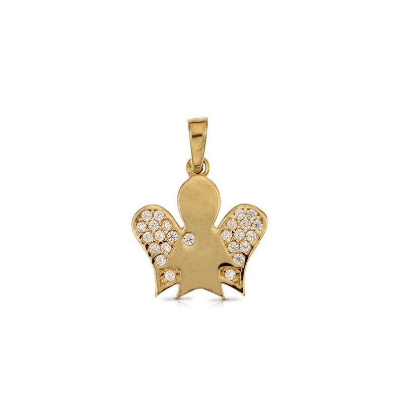 CIONDOLO ANGELO IN ORO GIALLO 18 KT CON ZIRCONI + COLLANA LACCIO IN OMAGGIO
