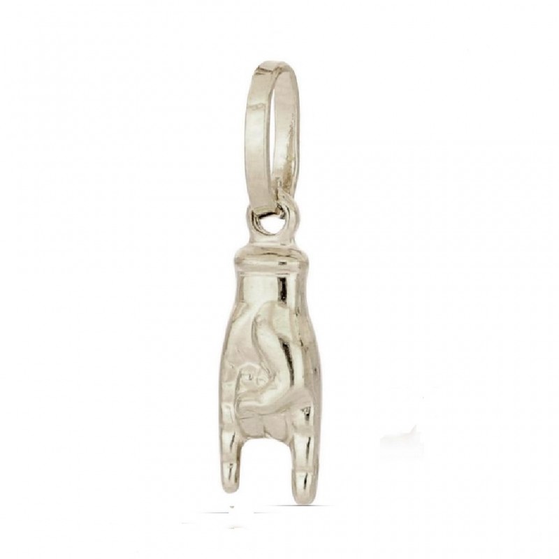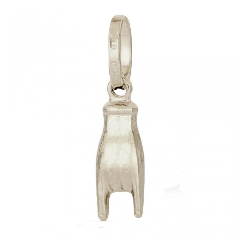 CIONDOLO CORNA PORTAFORTUNA IN ORO BIANCO 18 KT + COLLANA LACCIO OMAGGIO