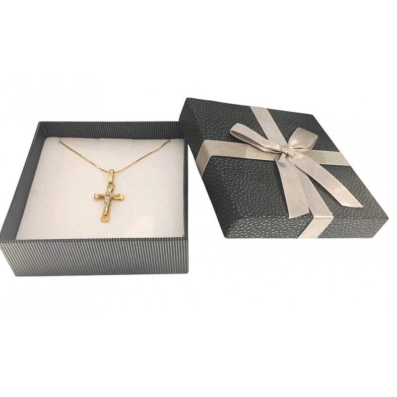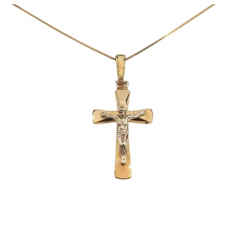 CIONDOLO CROCIFISSO IN ORO GIALLO E BIANCO 18KT + COLLANA LACCIO IN OMAGGIO