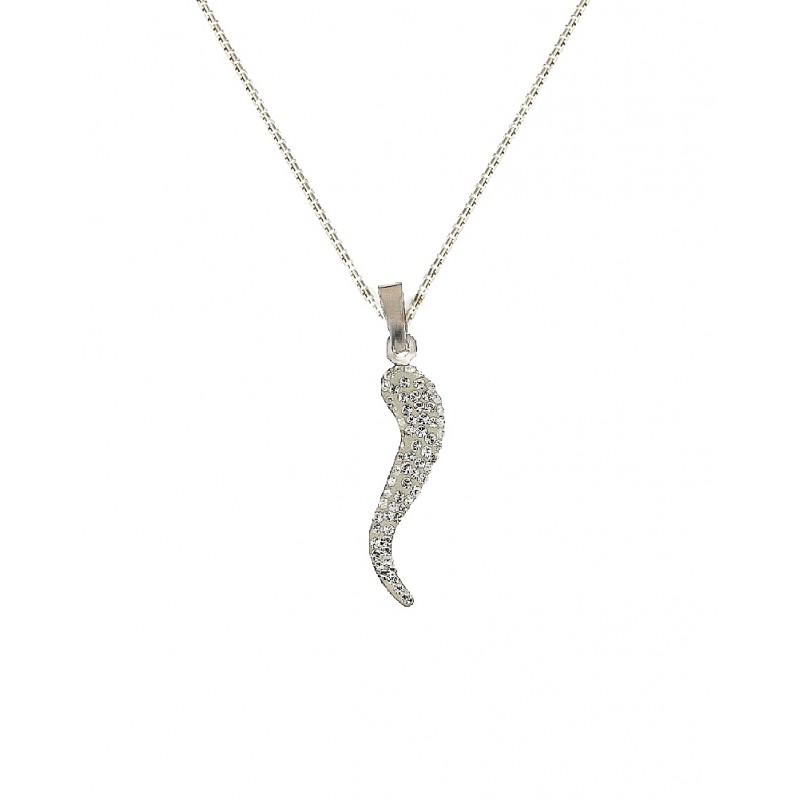 COLLANA VENEZIANA CON CORNO IN ORO BIANCO 18 KT E ZIRCONI TAGLIO BRILLANTE