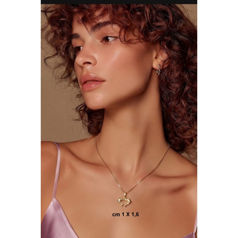 COLLANA CON DELFINI CUORE IN ORO GIALLO 18 KT UNISEX