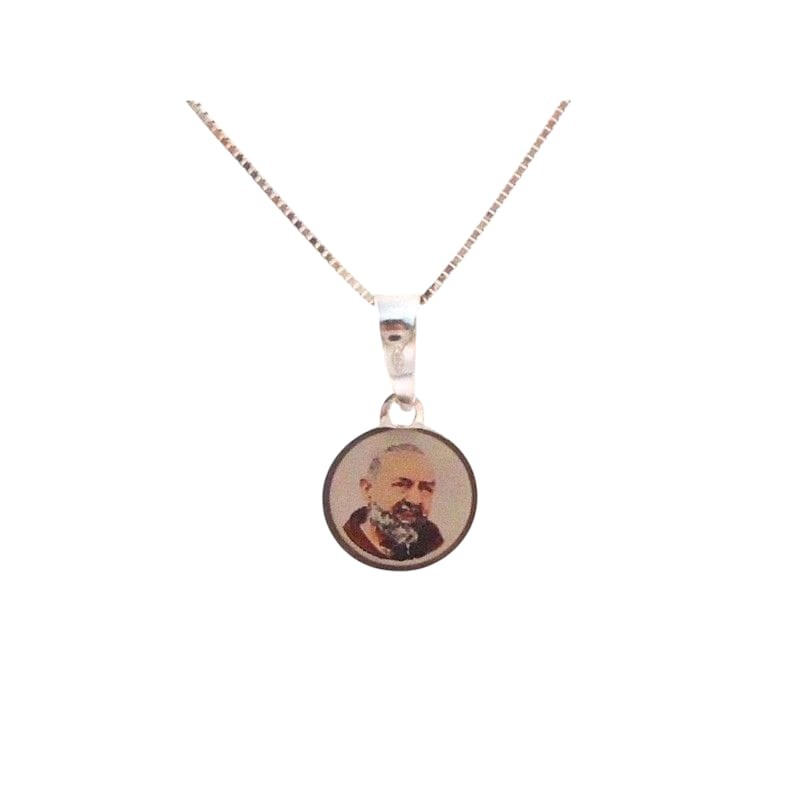 COLLANA CIONDOLO SAN PIO IN ORO BIANCO 18 KT