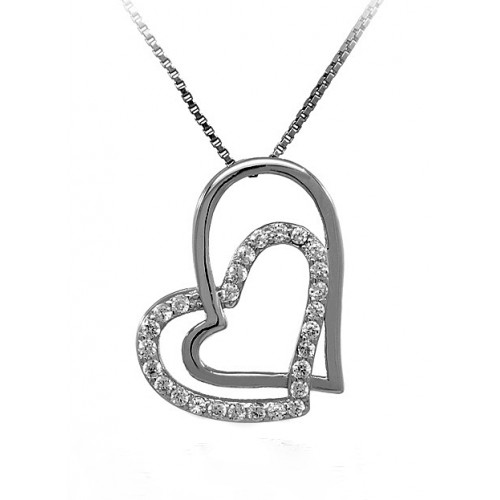 NECKLACE WITH A DOUBLE HEART IN RHODIUM-PLATED SILVER WHITE GOLD 18 KT WITH ZIRCONIA