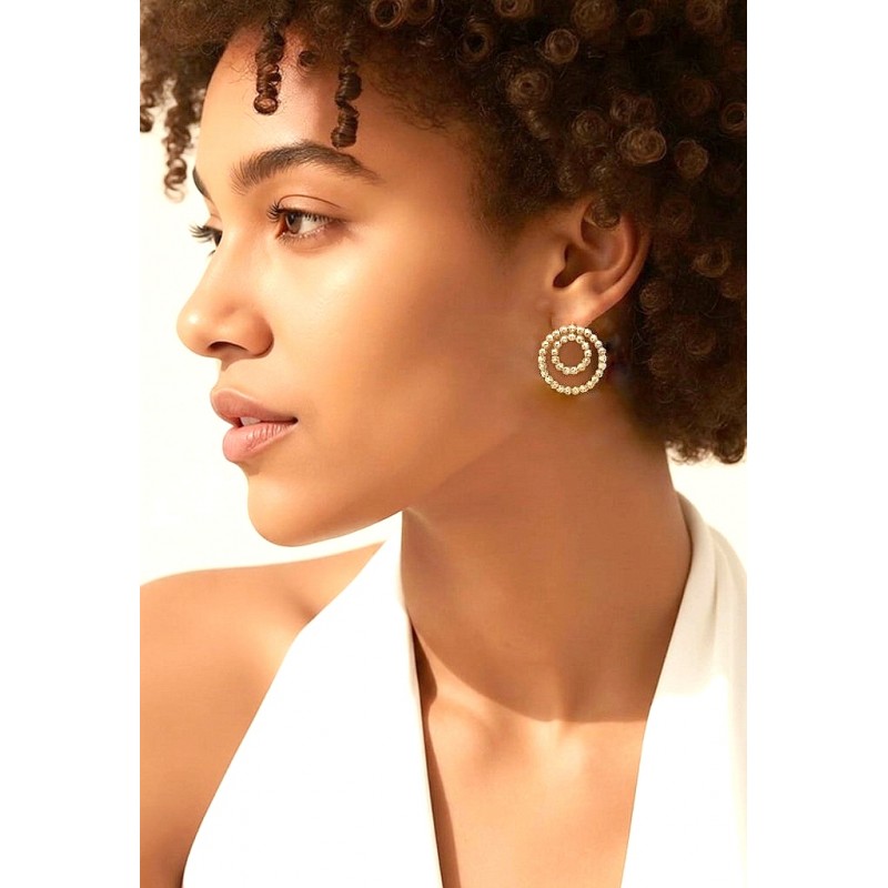 ORECCHINI PENDENTI DOPPIO CERCHIO CON SFERE PALLINE ORO GIALLO 18 KT