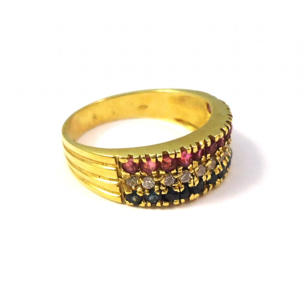 ANILLO DE LAS SEÑORAS DE ORO AMARILLO DE 18 KT CON DIAMANTES Y ESMERALDAS