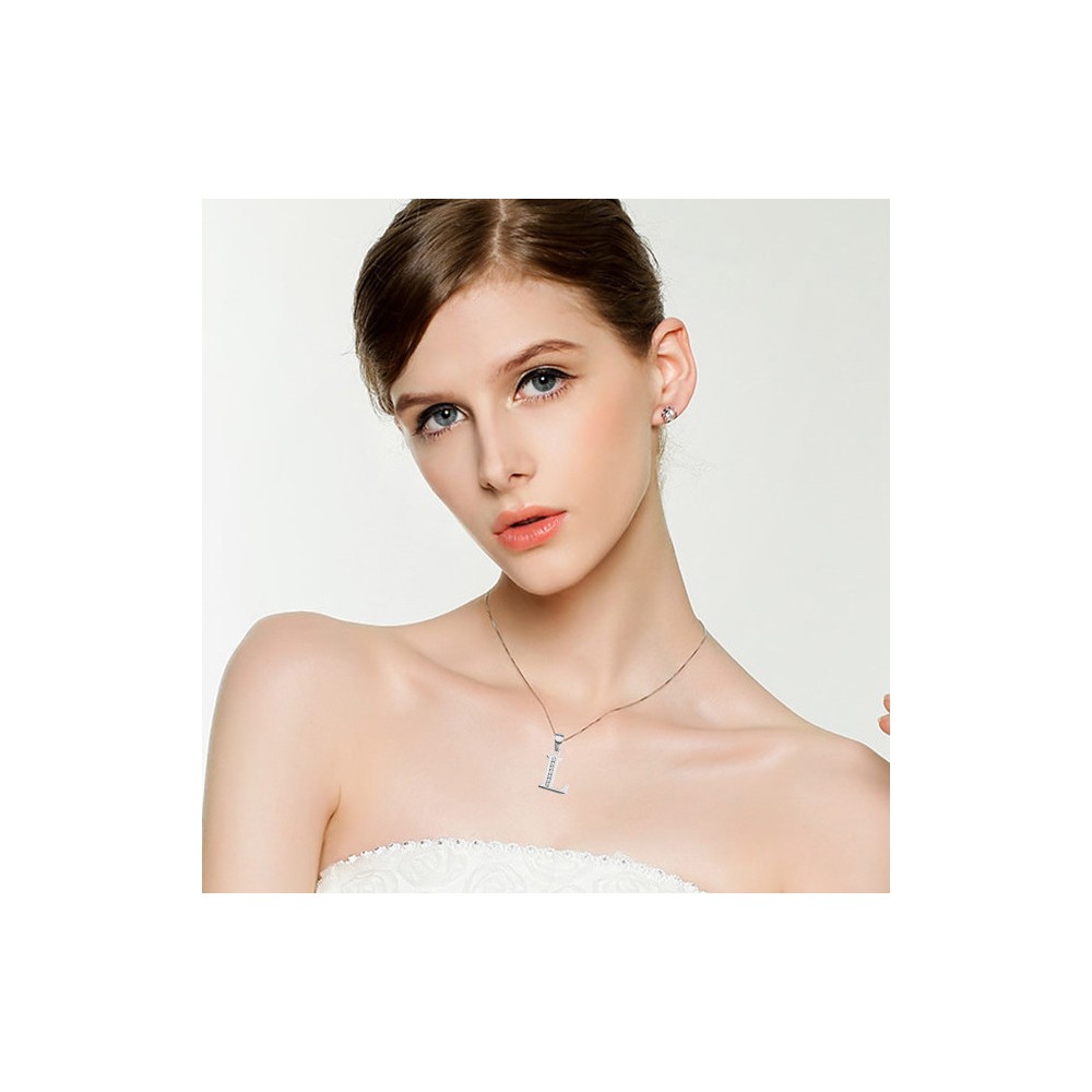 COLLAR CON UN COLGANTE DE LA LETRA INICIAL DE LA PLATA Y RODIO CHAPADO EN ORO BLANCO Y CUBIC ZIRCONIA CORTE BRILLANATE