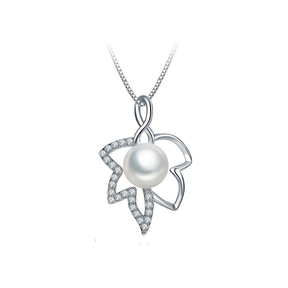 COLLAR CON COLGANTE EN PLATA RODIO CHAPADO EN ORO BLANCO CON PERLAS Y CIRCONITAS