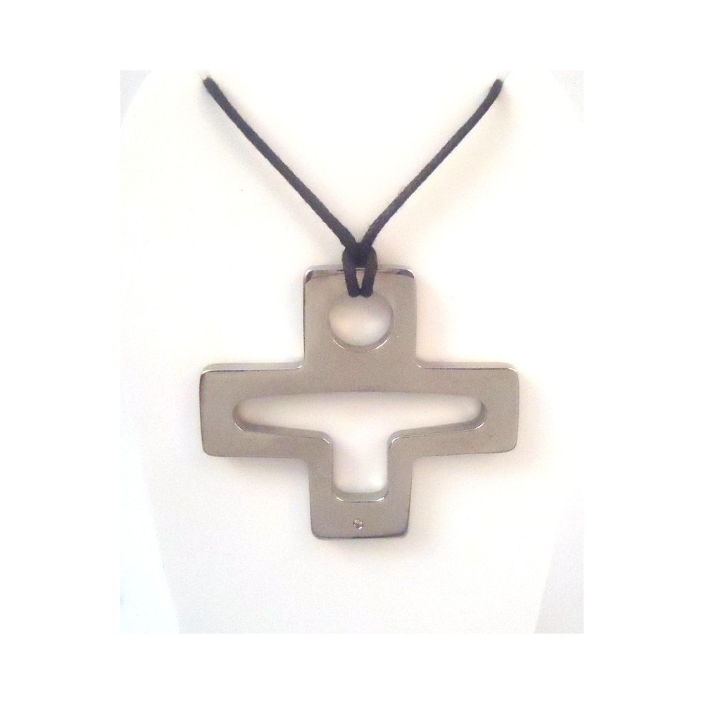 COLLAR DE CRUZ DE ACERO DE 18 KT CON CRISTALES