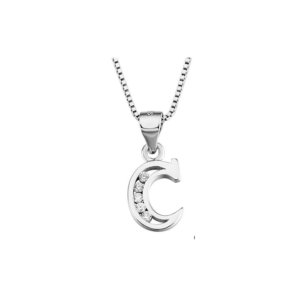 COLLIER AVEC UN PENDENTIF INITIALE LETTRE C EN ARGENT RHODIÉ OR BLANC ET ZIRCONE CUBIQUE COUPER BRILLANATE