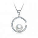 COLLIER AVEC PENDENTIF EN ARGENT RHODIÉ OR BLANC AVEC PERLE ET ZIRCONS