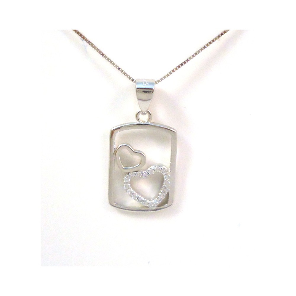 COLLIER UNISEXE AVEC COEUR EN ARGENT RHODIÉ OR BLANC 18 KT