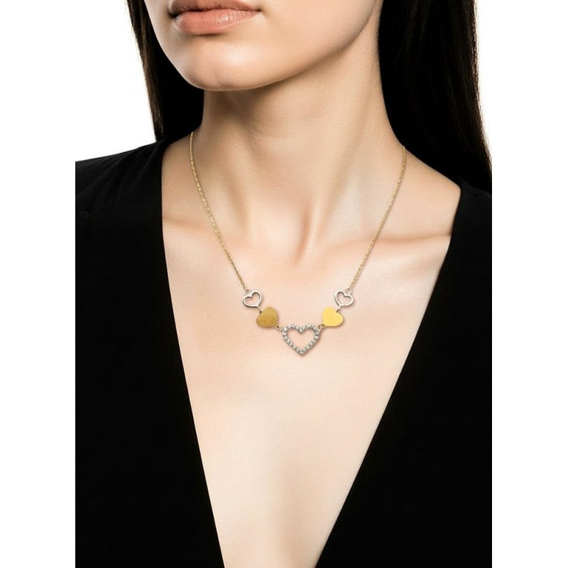 COLLANA DA DONNA CUORE IN ORO BIANCO E GIALLO 18 KT CON ZIRCONI TAGLIO BRILLANTE