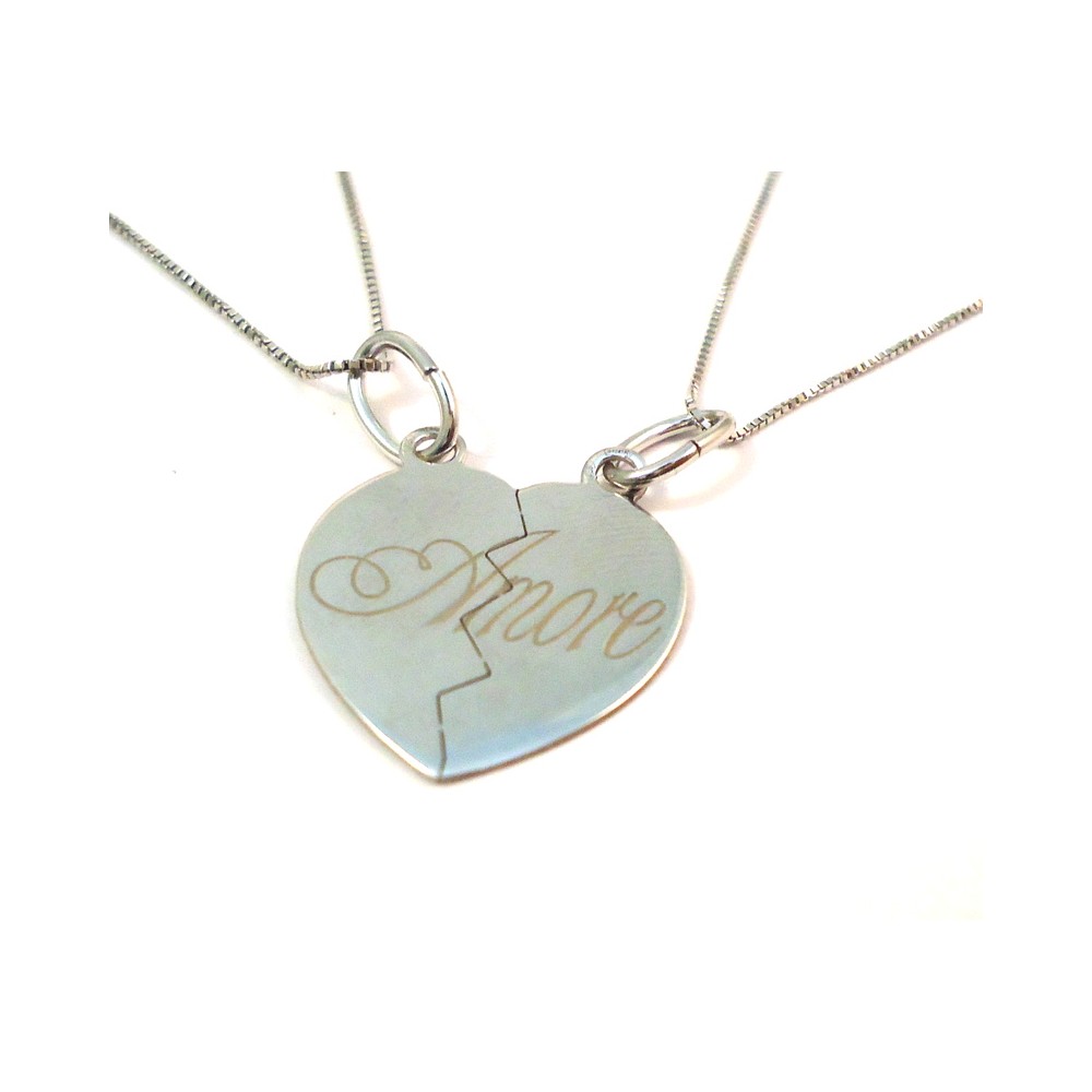 COLLIER AVEC COEUR DIVISÉ EN ARGENT RHODIÉ OR BLANC 18 KT AVEC 2 COLLIERS