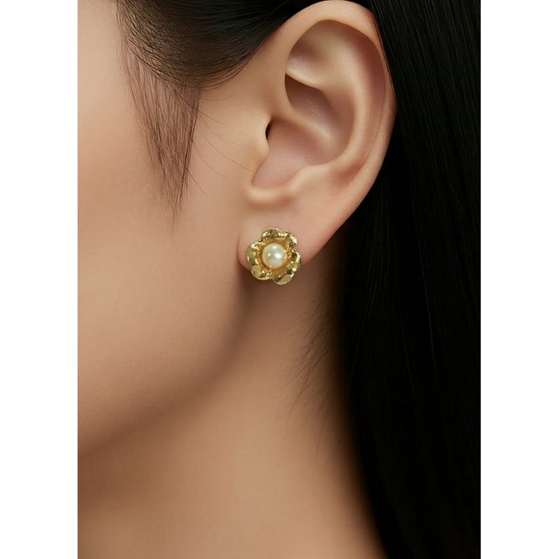 ORECCHINI FIORE IN ORO GIALLO 18 KT CON PERLE BIANCHE