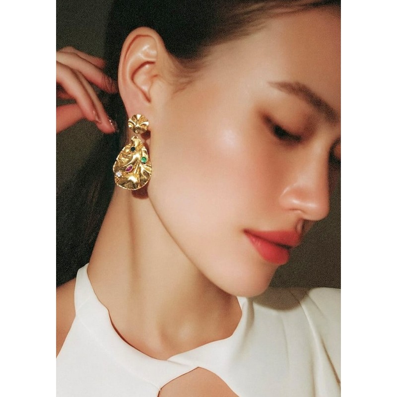 ORECCHIN PENDENTI IN ORO GIALLO 18 KT CON ZIRCONI COLORATI