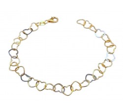 BRACCIALE DONNA CATENA CUORI IN ORO GIALLO E BIANCO 18 KT