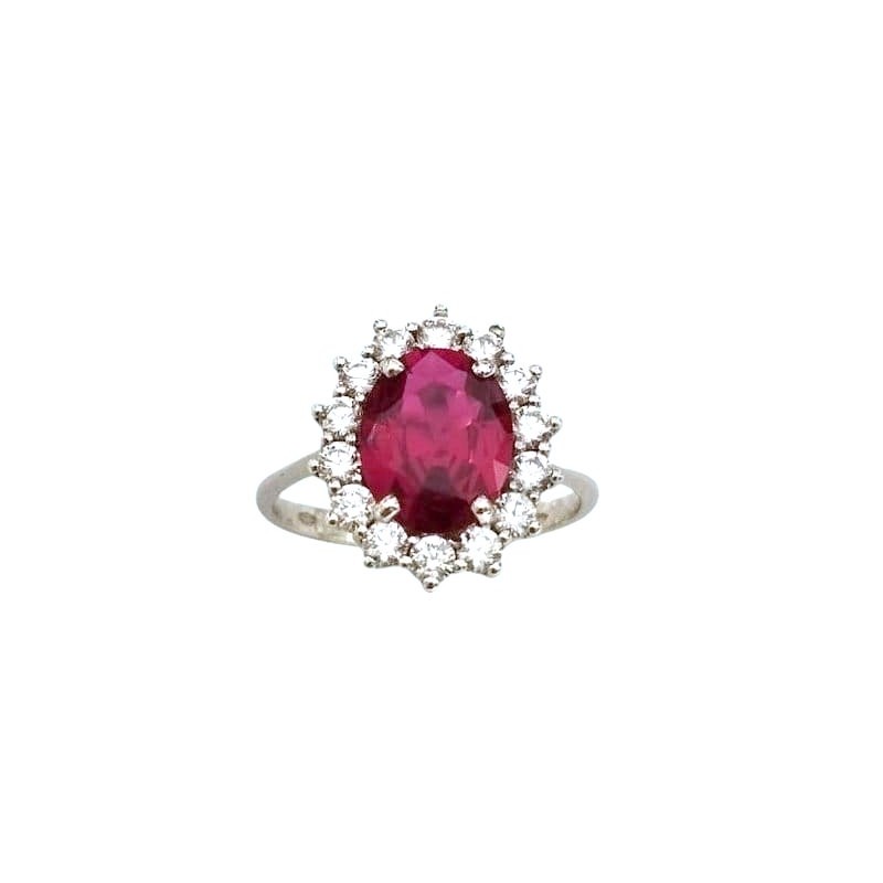 ANELLO KATE IN ORO BIANCO 18 KT CON ZIRCONE ROSSO RUBINO E BIANCHI