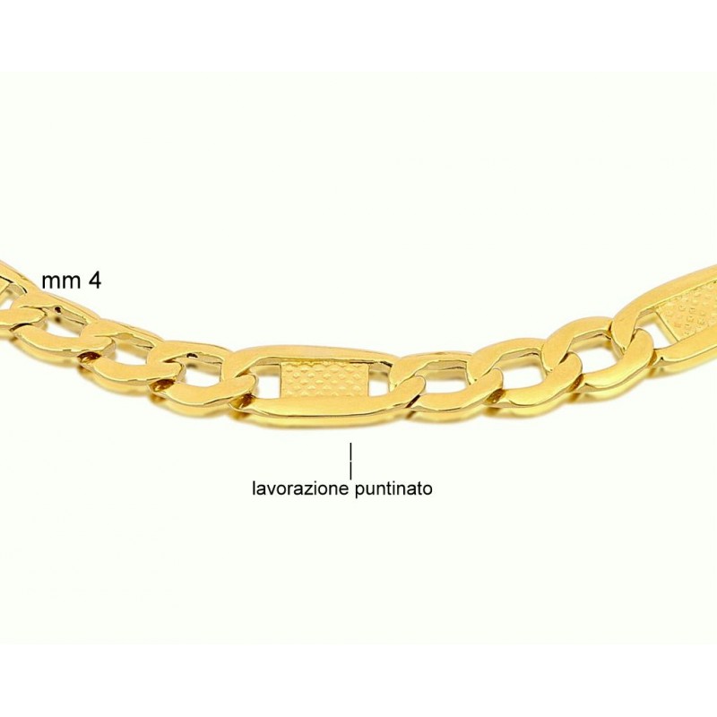 BRACCIALE UOMO CATENA 3 PIU 1 IN ORO GIALLO 18 KT PUNTINATO