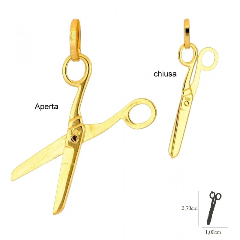 CIONDOLO FORBICI IN ORO GIALLO 18 KT + COLLANA LACCIO OMAGGIO