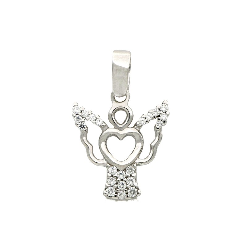 CIONDOLO ANGELO IN ORO BIANCO 18 KT +COLLANA LACCIO OMAGGIO