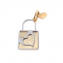 CIONDOLO LUCCHETTO CUORE IN ORO GIALLO BIANCO 18 KT +COLLANA LACCIO OMAGGIO