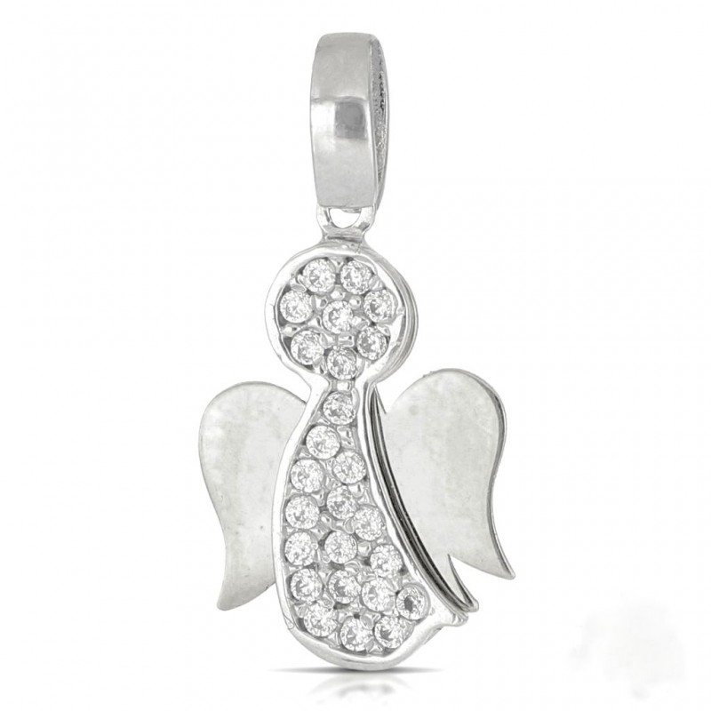 CIONDOLO ANGELO IN ORO BIANCO 18 KT +COLLANA LACCIO OMAGGIO