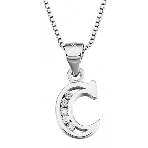 COLLANA CON CIONDOLO LETTERA INIZIALE C IN ARGENTO RODIATO ORO BIANCO E ZIRCONI TAGLIO BRILLANATE