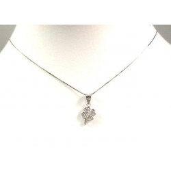 COLLANA CROCE IN ARGENTO RODIATO ORO BIANCO 18 KT CON ZIRCONI