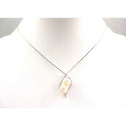 COLLANA IN ARGENTO RODIATO ORO BIANCO 18 KT CON PERLA DI MARE E ZIRCONI