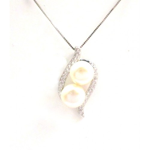 COLLANA CON CIONDOLO IN ARGENTO RODIATO ORO BIANCO CON PERLA E ZIRCONI