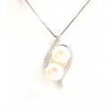 COLLANA IN ARGENTO RODIATO ORO BIANCO 18 KT CON PERLA DI MARE E ZIRCONI