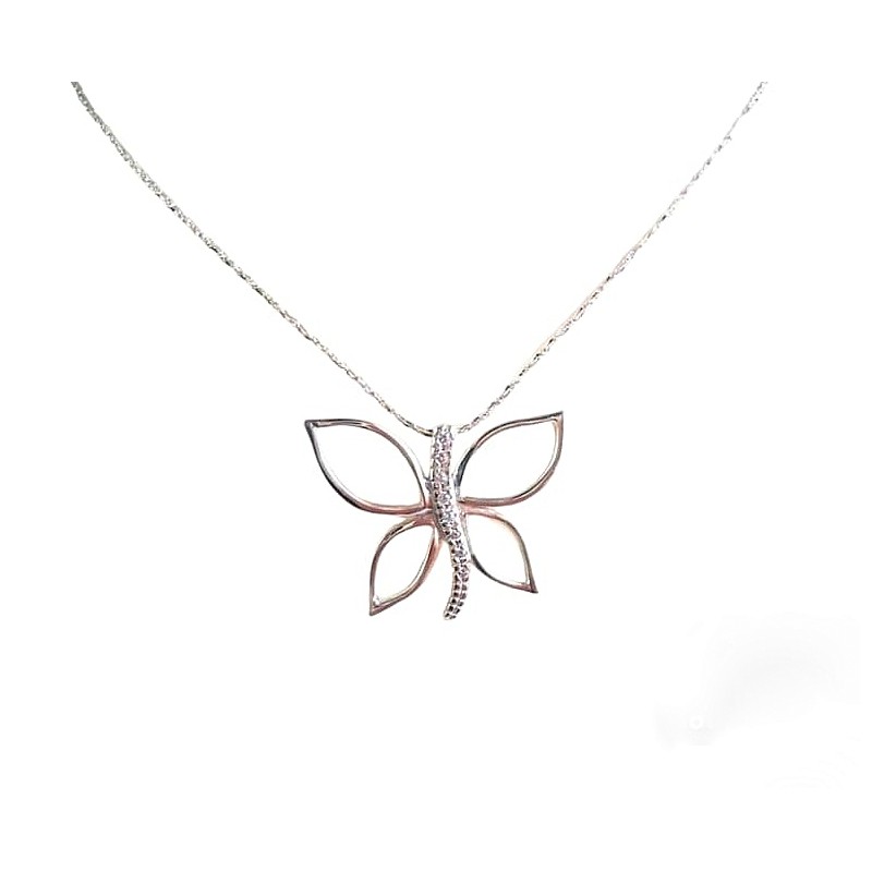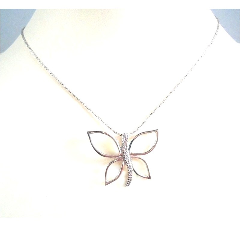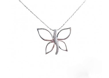 COLLANA CON FARFALLA IN ORO BIANCO 18 KT CON ZIRCONI TAGLIO BRILLANTE
