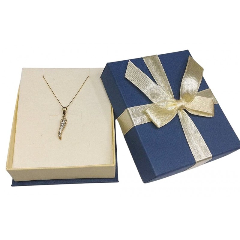 COLLANA CORNO IN ORO GIALLO 18 KT CON ZIRCONI BIANCHI TAGLIO BRILLANTE