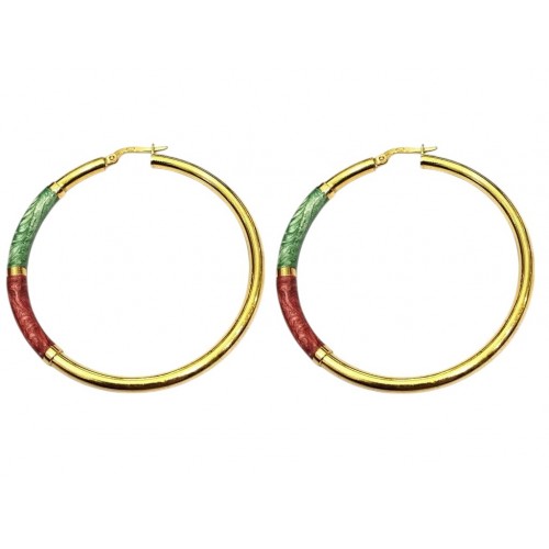 ORECCHINI CERCHI IN ORO GIALLO 18 KT SMALTO VERDE CHIARO E CIPRIA