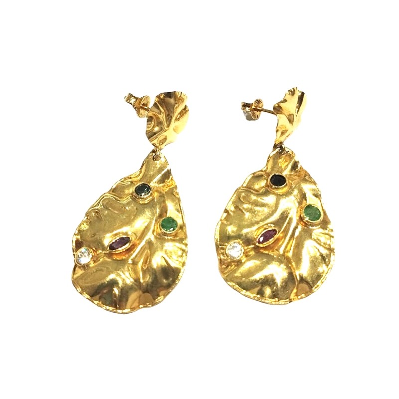 ORECCHIN PENDENTI IN ORO GIALLO 18 KT CON ZIRCONI COLORATI