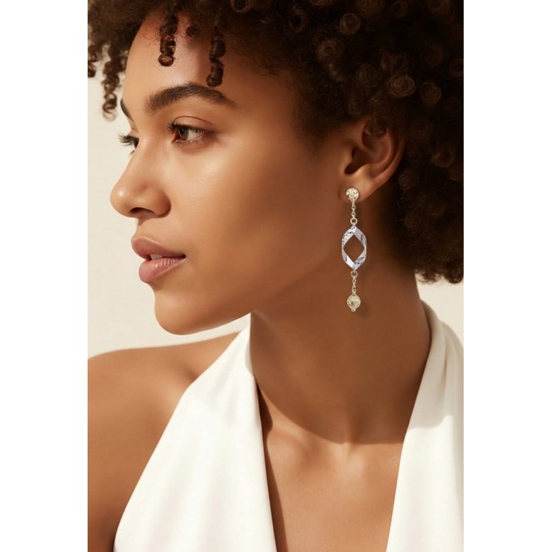 ORECCHINI PENDENTI IN ORO GIALLO E BIANCO 18 KT